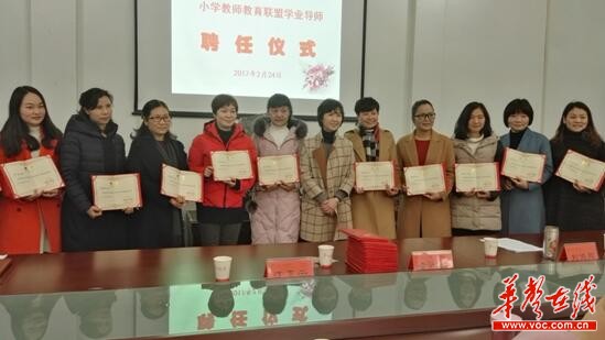 湖南一师校长童小娇给学业导师们颁发了聘任证书。童校长表示,希望导师们利用这个平台,和一师一道推进人才培养改革,把丰富的教学经验、高超的教学技能展示和教授给未来的老师,做大学和小学的桥梁和使者,为湖南基础教育的更大发展贡献力量。下一步,一师还将建设名师工作坊,促进优质课程开发和共享。