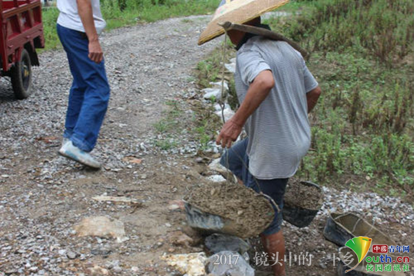 正在挑石子修路的夏伟清。中国青年网通讯员 罗德琳 摄