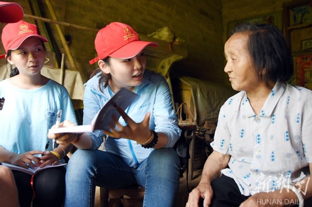 双峰县井字镇铜梁村,学生们在贫困户家走访。