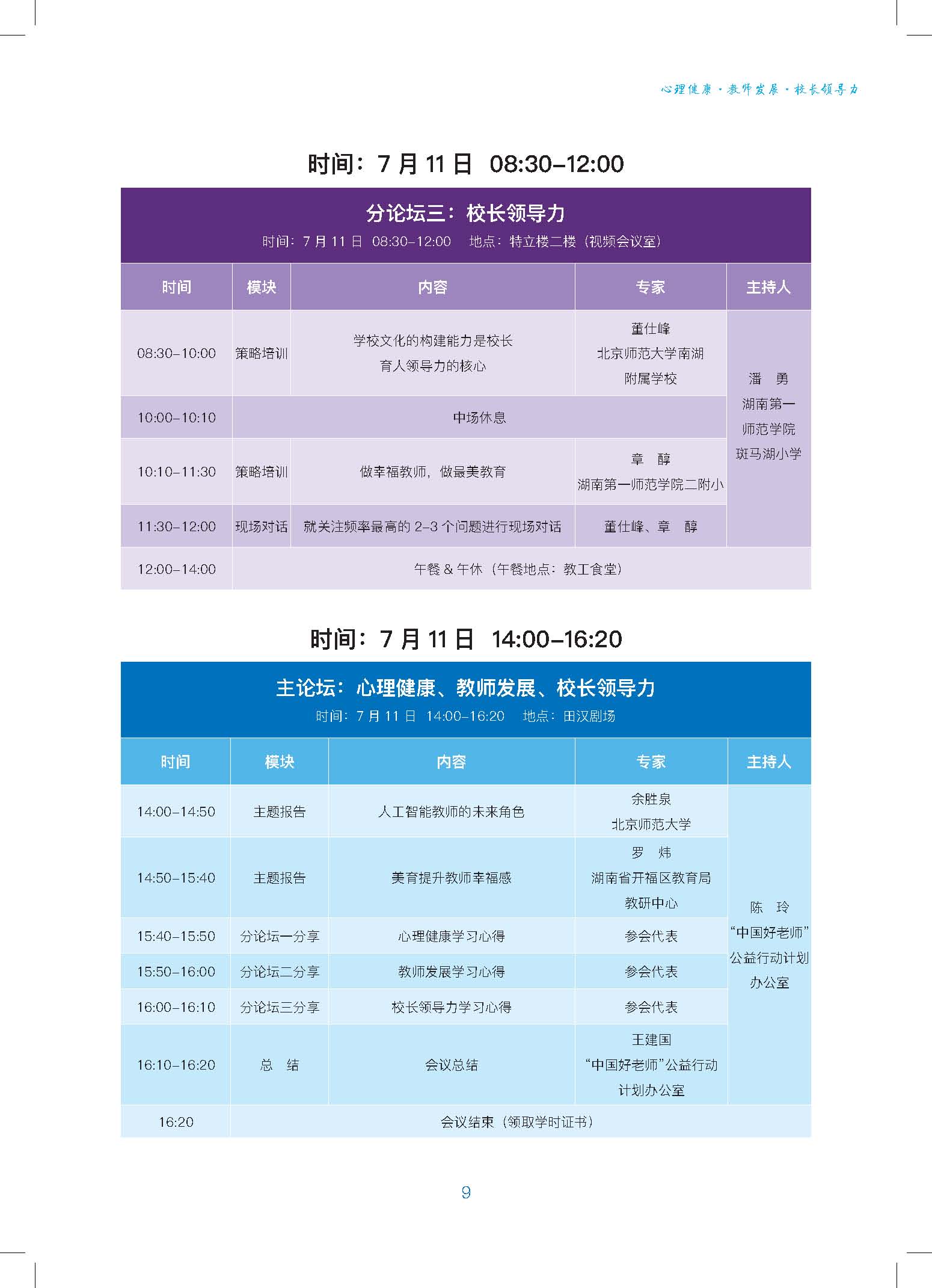 7月10日—11日:田汉剧场、视频会议室、实验剧场
