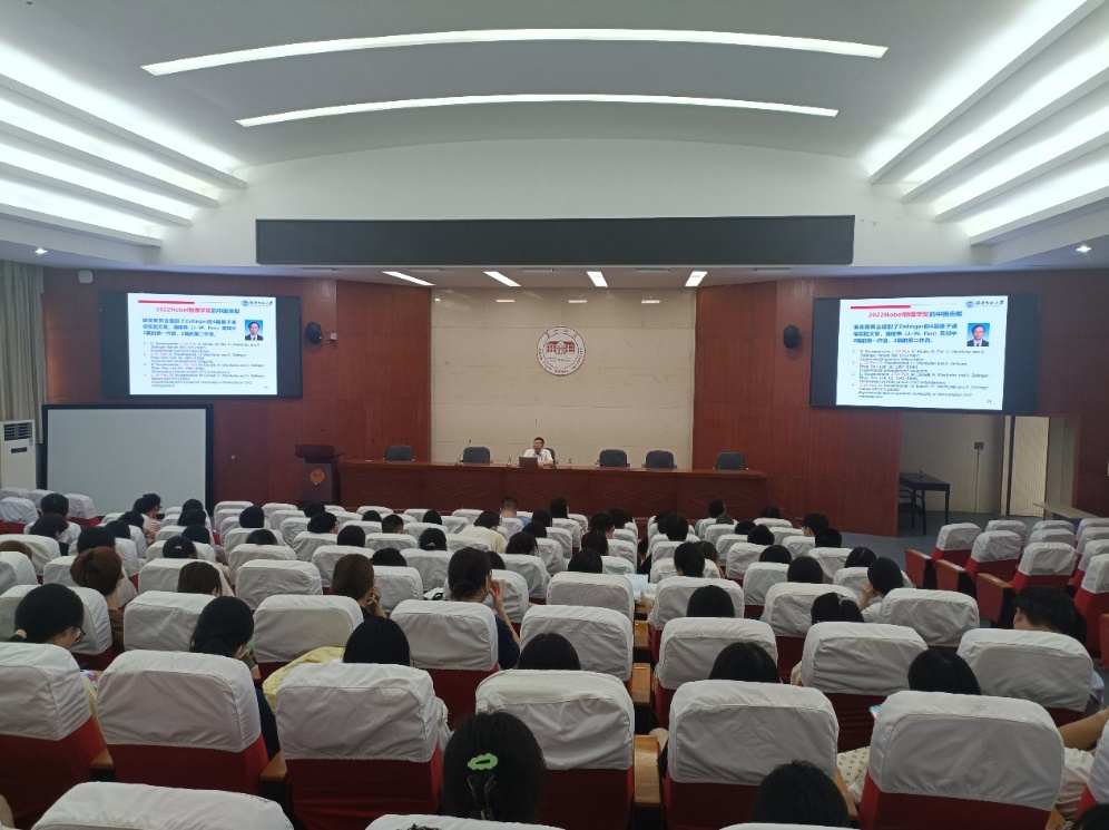 许兰教授在最后的总结中指出此次学术报告使Beat365师生对量子物理领域前沿科学研究有了更加深入的认识,有助于我校师生拓展科学视野、培养科学研究的素养、激发投前沿科学研究的兴趣和热情。
