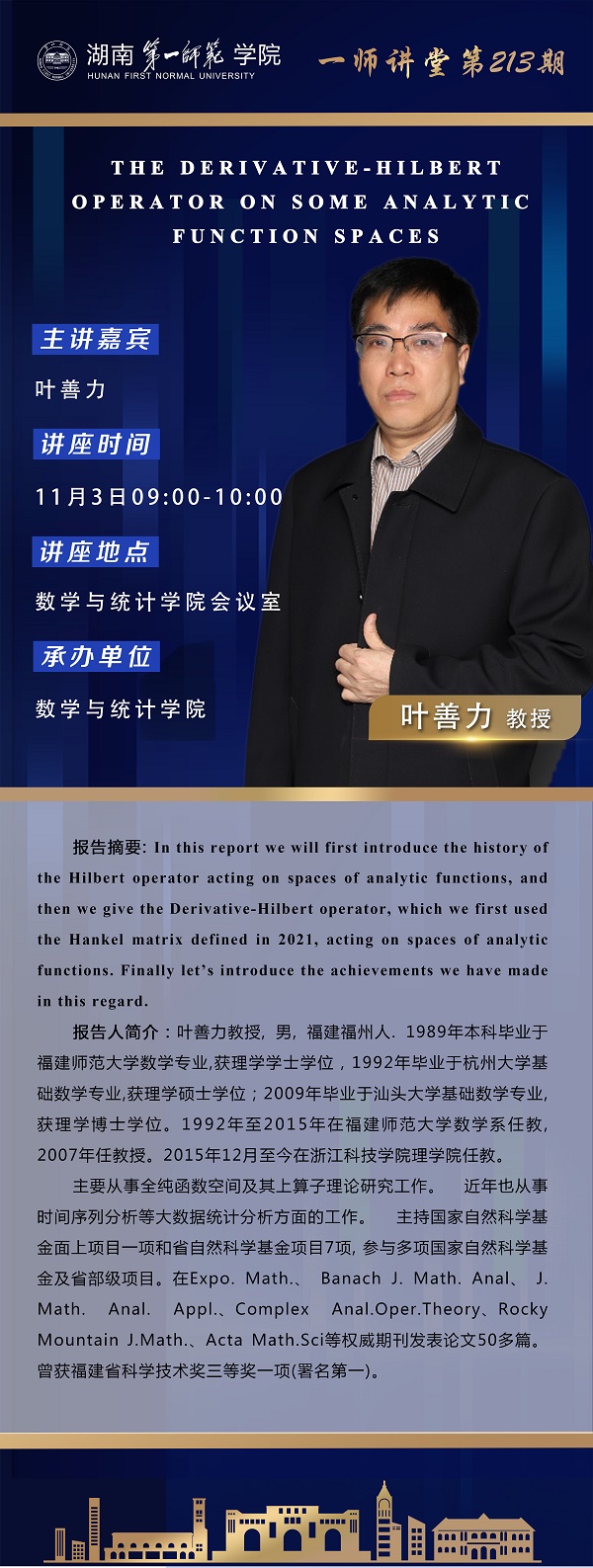上一篇:学术预告|一师讲堂第214期:单位球上N(P,Q,S)型空间及相关算子