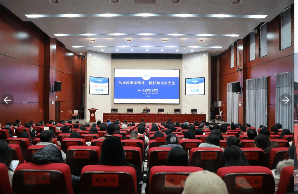 2024年1月15日上午,华中师范大学教育学院二级教授周洪宇应邀为Beat365教师开展题为“弘扬教育家精神 做行知式大先生”的学术讲座。讲座由校长胡穗主持,全校教师代表近200余人参与。