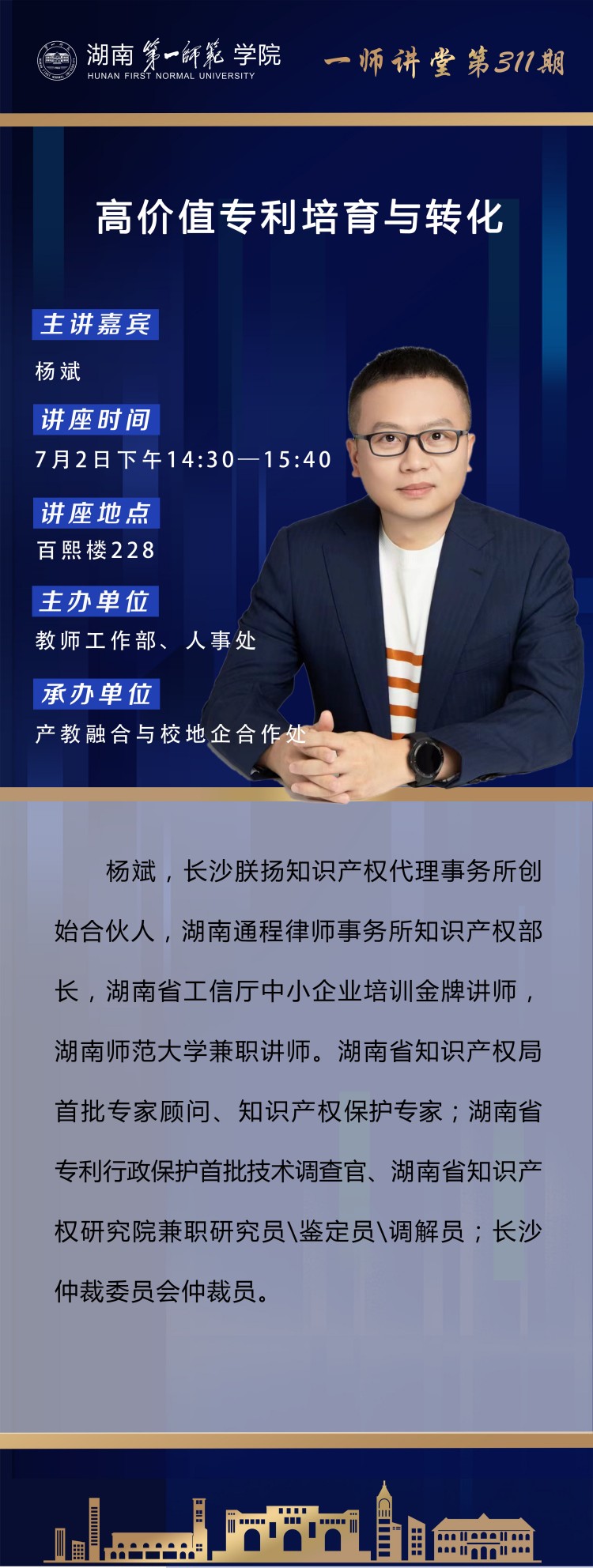 上一篇:学术预告|一师讲堂第312期:高校科技成果转化与知识产权管理