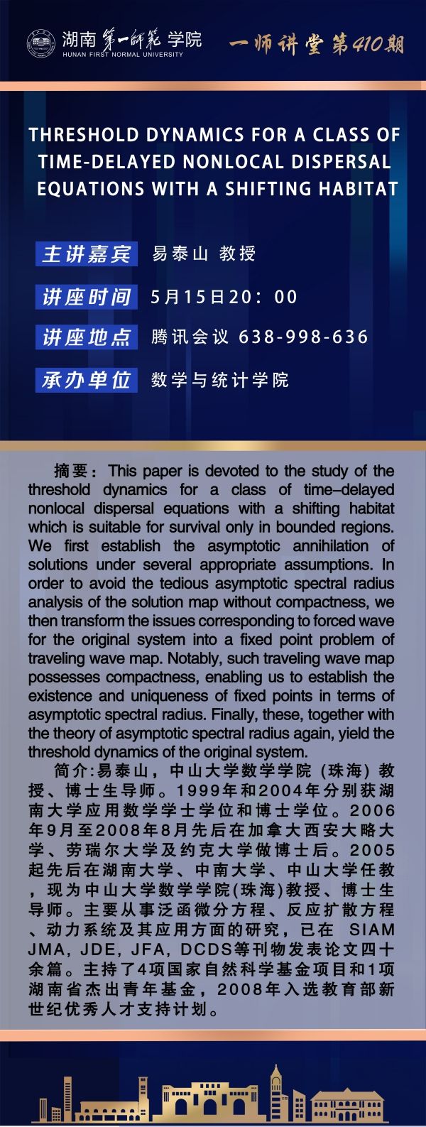 下一篇:学术预告|一师讲堂第409期:A VARIANT OFTHE TEUF-WAGNER FORMULA AND APPLICATIONS