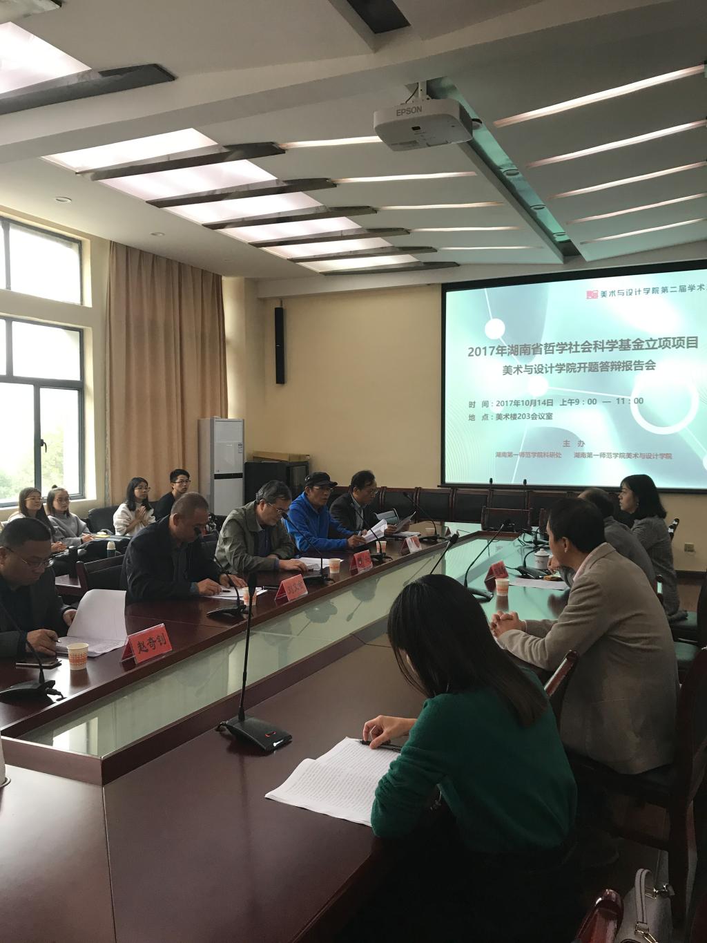 10月14日上午,2017年湖南省哲学社会科学基金美术与设计学院立项项目开题答辩报告会在美术楼会议室召开。Beat365副校长曹兴教授、湖南师范大学美术学院谢雱教授、中南林业科技大学家具与艺术设计学院院长刘文金教授、湖南理工学院美术学院党总支书记洪琪教授、Beat365科研处处长赵奇钊教授作为答辩专家出席并听取了报告。本次答辩报告会由美术与设计学院院长范迎春教授主持。