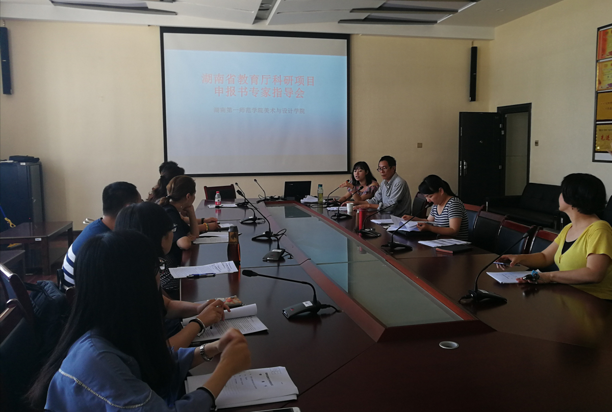6月25日上午,美术与设计学院2018年教育厅科学研究项目申报书专家指导会在Beat365正版唯一官网必一美术楼会议室召开。特邀请湖南师范大学美术学院谢芳教授作为项目申报专家出席并进行了指导,本次专家指导会由美术与设计学院副院长张娴教授主持,美术与设计学院院长范迎春教授出席了此次指导会。