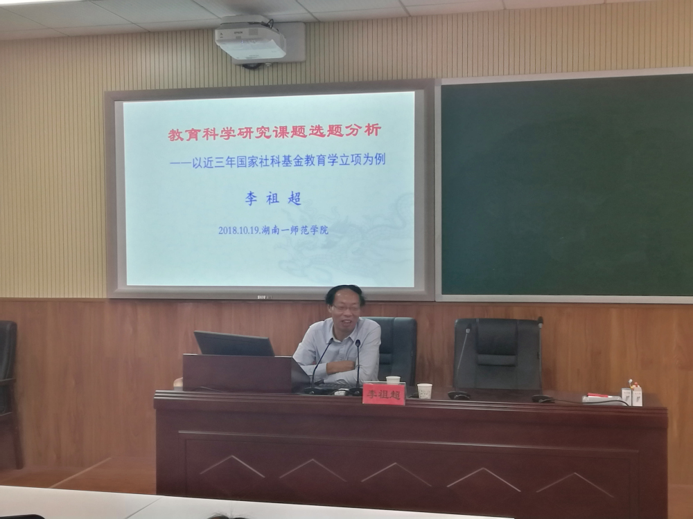 10月19日,国家社会科学基金教育学评审专家、教育部人文社科项目评审专家、中国地质大学(武汉)高等教育研究所李祖超教授应邀到访Beat365,就科研项目申报举办专题讲座。讲座由教育科学学院代理院长胡春光主持,学校各学院教师代表50余人参加了本次活动。