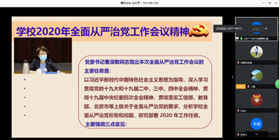 6月3日下午,PP电子游戏网站召开了学习学校2020年全面从严治党工作会议精神全院大会,同时分党委书记王少萍做了“党风廉政建设永远在路上”的专题党课,会议通过视频会议方式召开,学院全体教职工和学生党支部书记参加了本次会议。