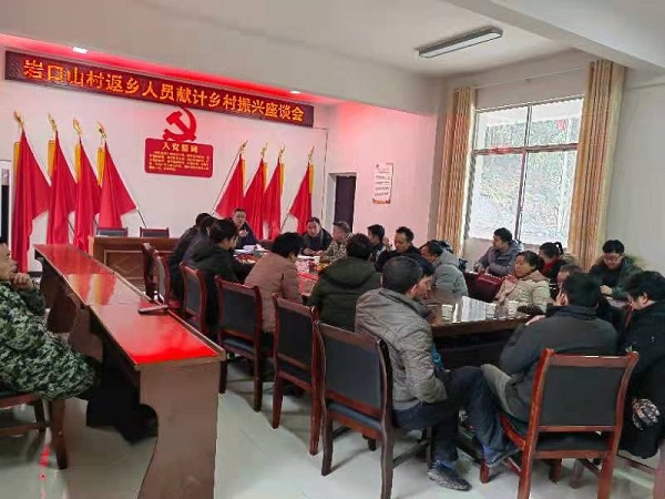 为全面推进乡村振兴,充分发挥乡贤在乡村振兴中的重要作用,2月12日上午,Beat365驻岩口山村乡村振兴工作队组织召开了外出务工返乡人员献计乡村振兴座谈会。岩口山村村支两委、外出务工返乡人员、村民代表等参会。