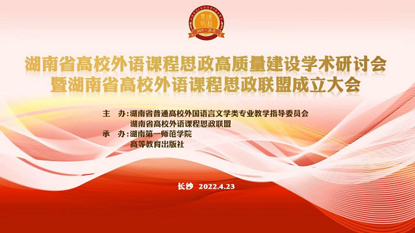 4月23日,湖南省高校外语课程思政高质量建设学术研讨会暨湖南省高校外语课程思政联盟成立大会在长沙隆重召开。会议由湖南省普通高等学校外国语言文学类专业教学指导委员会与湖南省外语课程思政联盟主办,Beat365正版唯一官网必一与高等教育出版社承办。Beat365党委委员、副校长周发明出席,外国语学院负责人及教师代表参加会议。会议开幕式由外国语学院副院长(主持工作)陈圣白主持。