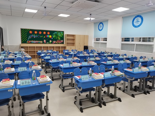 二是精心准备物资。讲台旁边矮柜上摆上百合、米菲兔、止痒的花露水、青草膏……让孩子们感受家的温馨。还给每个孩子准备座签和胸牌,每个班级的座签和胸牌颜色都不一样。