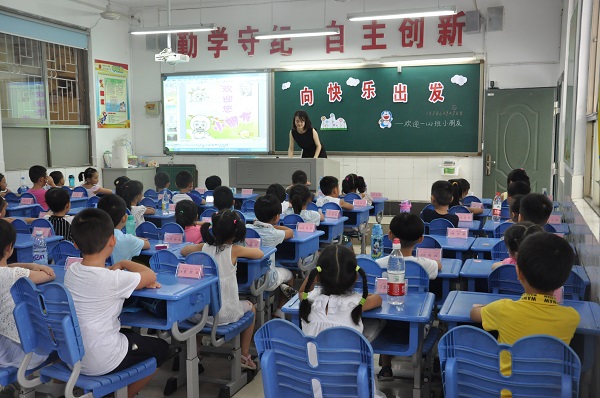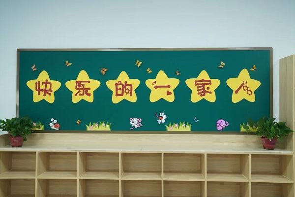 三是美化教室环境。为了让孩子尽快喜欢自己的教室,老师们努力将教室布置得如童话般可爱而温馨,创设与幼儿园衔接的学习环境。黑板前,写上热情的欢迎语;教室两旁的宣传栏正静静地等待孩子们的精彩;教室后面的黑板上用海绵纸剪贴鲜艳的花朵,将教室打扮得如同一个“小花园”。黑板的右边是图书角,陈列着漂亮的绘本、有趣的童话……。课表中课程搭配合理,抽象、需注意力高度集中的课程一般安排在上午,生动、有趣的课程安排在下午。教室里,每一件物品都在欢迎刚踏入小学的孩子们。
