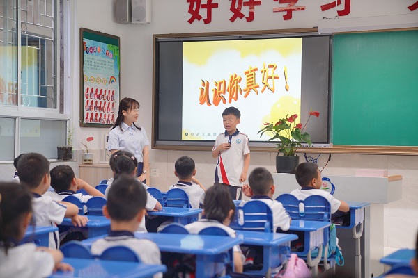 云端见面,拉近距离。分班结束后,班主任会马上发一个热情洋溢的信息给家长,立刻建班级QQ群,将自己的生活照发到群里,同时让孩子们把自己的生活照及简短的自我介绍发到班级群。孩子们早早地“见”过了他们的新老师,在QQ群也互相“见”过了,这样,即便是第一次在校园里相遇,师生、生生之间,都不是“陌生人”了。老师们见到学生们,热情地打招呼,脸上的微笑、微蹲的身子、温柔的抚摸,这样的举动能很快消除师生之间的陌生感。