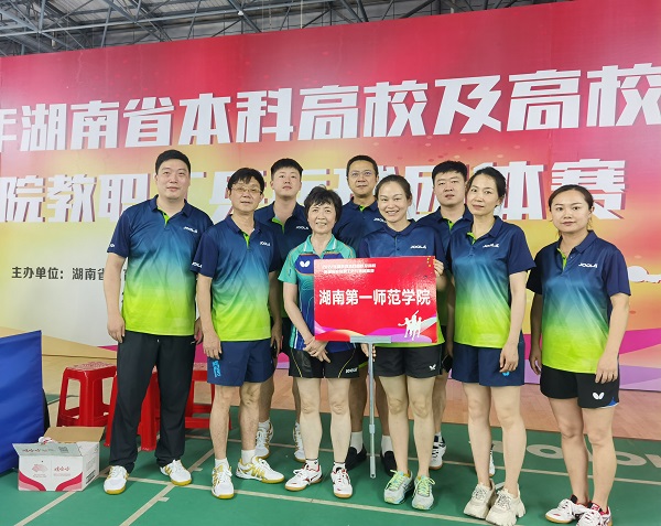 6月17—19日,2022年湖南省本科高校及高校附属医院教职工乒乓球团体赛在湖南省人民体育场举行。由学校党委副书记、工会主席李克勤担任领队,校长童小娇、原副校长刘宇等队员组成的学校教职工乒乓球代表队取得了该赛事团体赛第七名的成绩。队员们用汗水和实力诠释了一师人奋力拼搏、勇攀高峰的精神,展示了红色一师的青春活力与昂扬向上的一师风采。