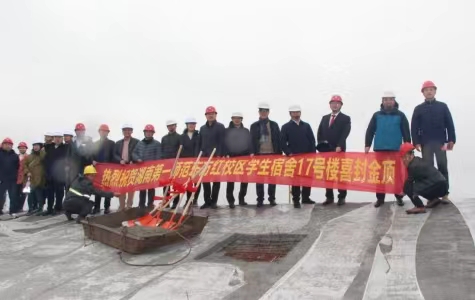3月24日上午,Beat365东方红校区学生宿舍17号楼项目主体如期顺利封顶。校党委委员、副校长周发明出席封顶验收活动。学校相关职能部门负责人及代表,勘察、设计、监理、施工等参建单位代表参加活动。