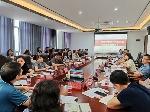 会议对当前校园安全稳定、假前安全教育和校园管理、心理健康教育、辅导员队伍建设、暑期“双百”社会实践和毕业生工作等进行了详细部署,并对安全稳定和意识形态工作进行了分析研判。