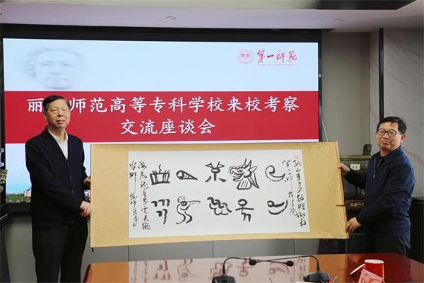 最后,彭鸿昌代表丽江师专向Beat365赠送了用纳西族东巴文书写的“海为龙世界,云是鹤家乡”书法作品,象征着两校以合作促发展创未来的美好愿景。
