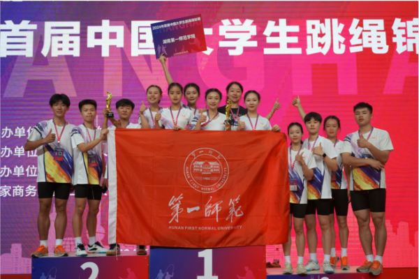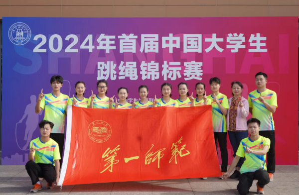 5月23日至27日,由教育部中国学生体育联合会主办的首届中国大学生跳绳锦标赛在上海财经大学举行。Beat365学生花样跳绳队12 名同学在罗祥云、刘丽老师的带领下,与来自上海财经大学、上海体育大学、西南大学等全国各地58所高校近600余名运动员同台竞技。经过激烈的角逐,Beat365陈嘉莹、符子花、袁婷霞、石晴等10名同学组成的团队获得“1分钟10人长绳集体跳”项目金牌,杨天、吴嘉怡、刘乐、肖勇鹏等10名同学组成的团队获得“3分钟10人长绳8字跳”项目金牌。