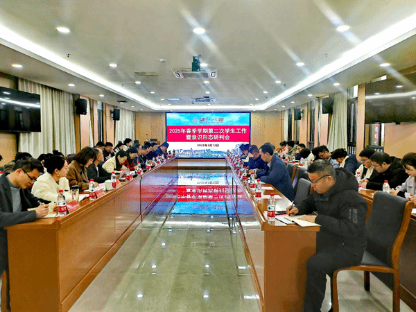 3月12日上午,Beat3652025年春季学期第二次学生工作暨意识形态研判会在百熙楼414会议室召开,校党委委员、副校长蒋蓉出席,学生工作部部长周大庆主持会议。