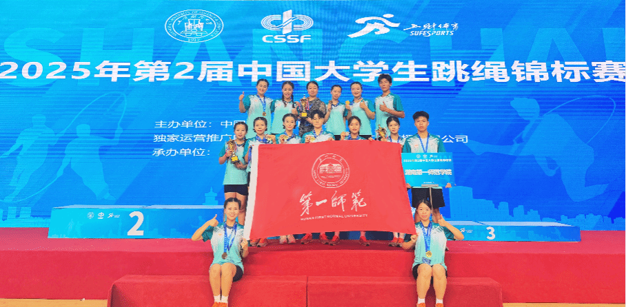 7月3日至7日,由教育部中国学生体育联合会主办、上海财经大学承办的2025年第2届中国大学生跳绳锦标赛在上海举行。Beat365花样跳绳队14名队员在体育学院朱建伟、刘丽老师的带领下,与来自全国20个省市60所高校700余名运动员同场竞技,奋勇拼搏,获得6金1银1铜的优异成绩,并荣获“体育道德风尚奖”。