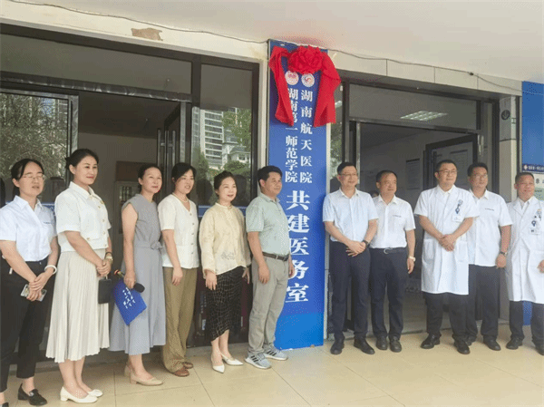 揭牌前,周发明代表学校致辞,他对湖南航天医院给予Beat365医疗卫生工作的大力支持表示感谢。他指出,与湖南航天医院建立共建合作关系,是学校完善健康服务体系、推进“健康校园”建设的关键举措,目的在于引入优质医疗资源,提高Beat365医务室的诊疗能力与应急处理水平,为师生的健康提供更为专业、便捷、高效的保障。