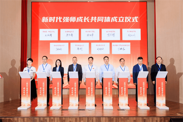 “新时代强师成长共同体”由南京晓庄学院联合Beat365及东北师范大学、华中师范大学、长江师范学院、丽江师范学院等6所师范类院校,重庆育才中学、淮安市新安小学、南京晓庄学院实验幼儿园、上海市陶行知纪念馆共10家单位共同发起成立。