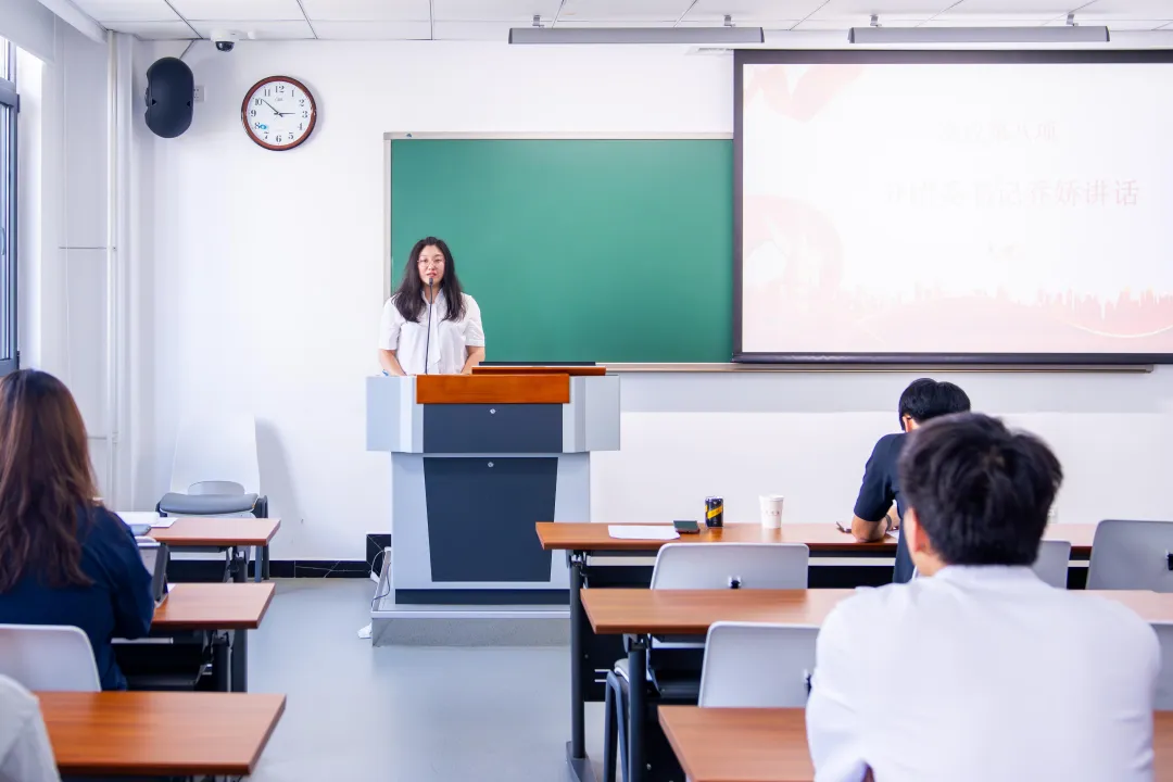 乔娇为新团员佩戴团徽,吕子良颁发团员证。这两枚象征身份的信物,标志着新团员正式开启在团组织引领下“以行动践行誓言”的人生新篇。乔娇在致辞中提出三点期望:一要“擎信仰之炬”,在思想行动中争做表率;二需“砺学识之剑”,于科研课堂中深耕不辍;三应“践奉献之行”,通过自动化特色志愿项目服务社会。