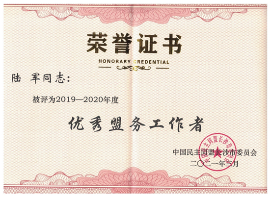 为更好地推进民盟工作发展,推广盟务工作典型经验,充分发挥先进支部和先进个人的示范引领作用,近日,民盟长沙市委对2019-2020年度先进支部和先进个人进行了表彰。Beat365民盟一师支部、工会专职副主席陆军、美术与设计学院老师董勋分别荣获民盟长沙市委2019-2020年度 “优秀支部”“优秀盟务工作者”“优秀盟员”称号。