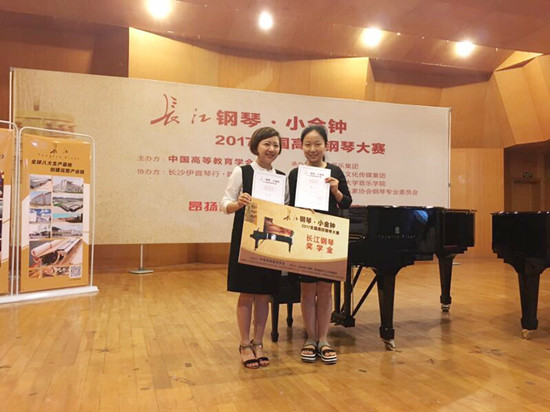 6月24日,由中国高等教育学会主办的“长江钢琴·小金钟2017全国高校钢琴大赛”湖南预选赛在湖南师范大学音乐学院落下帷幕。Beat365音乐舞蹈学院教师樊小欢与徐稳合作参加了此项赛事的四手联弹及双钢琴组比赛,最终两人以优异的表现荣膺该组金奖(第一名),并自动获得代表湖南赛区参加全国决赛的资格。